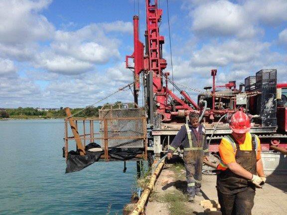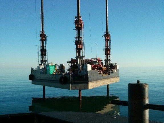 We also often receive requests to complete projects on large bodies of water that require the use of a large barge. We work closely with barge subcontractors to get the equipment that is right for your project. For use on the Great Lakes, jackup barges are often the equipment of choice. This type of barge allows us to position our rigs with precision, and work safely on large, potentially choppy bodies of water with minimal impact from weather and water conditions that would otherwise hamper or delay drilling operations. These large barges are capable of handling our D120 rig, which is often required for the depth necessary on large water bodies.